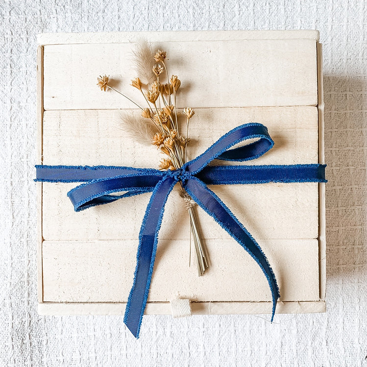 Beautifully packaged in our keepsake Wooden Box and tied with a bow and dried floral bundle. The perfect gift for a baby shower or a new little one welcoming present
